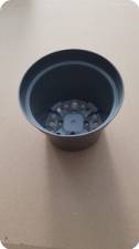 Graue Töpfe von TEKU der MCX Serie mit einem Durchmesser von 10,5 cm. Die Töpfe haben 18 Bodenlöcher und sind 8,5 cm hoch.